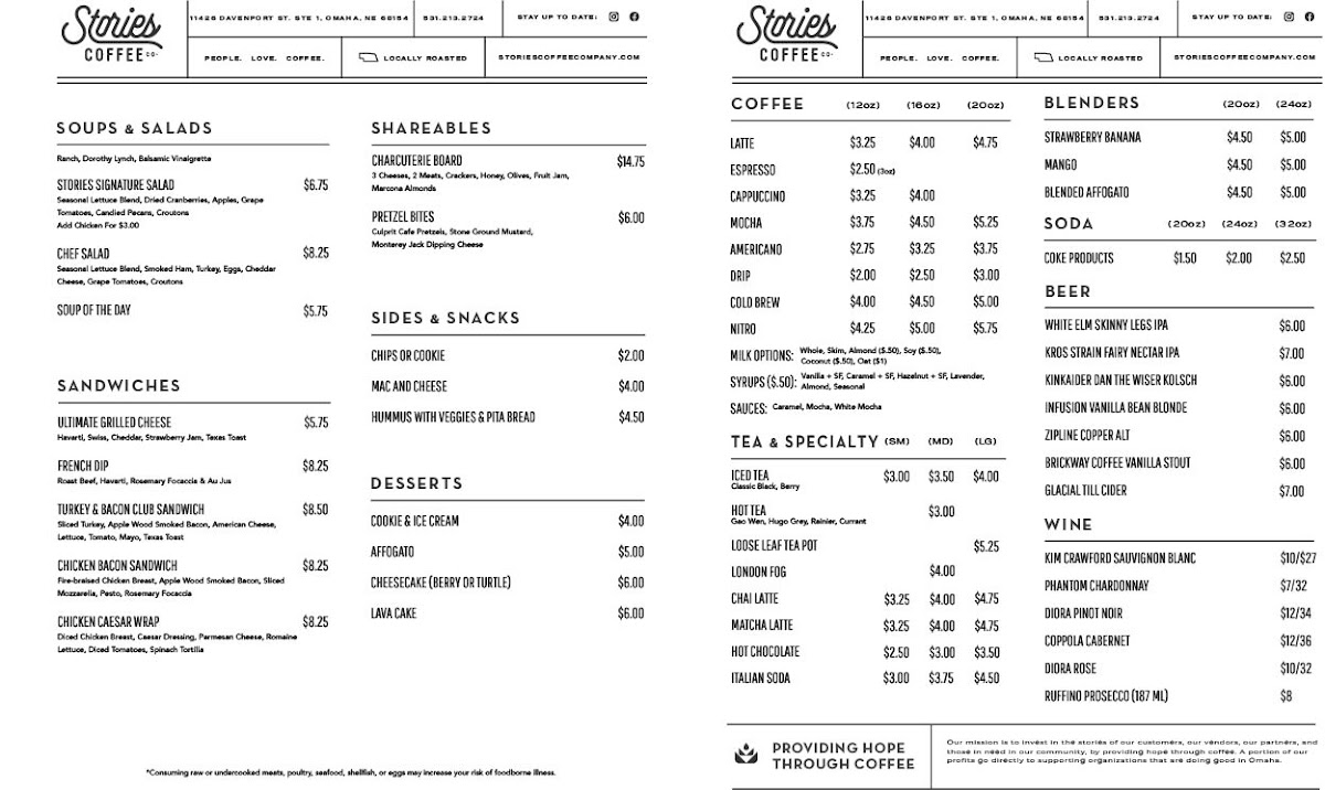 Welcome to Stories Coffee Company, a vibrant coffee shop nestled in the heart of Omaha, NE. Whether you’re a local or just passing through, this gem located at 11432 Davenport St Ste 1 promises more than just a caffeine fix; it offers an experience that invigorates the mind and soul.